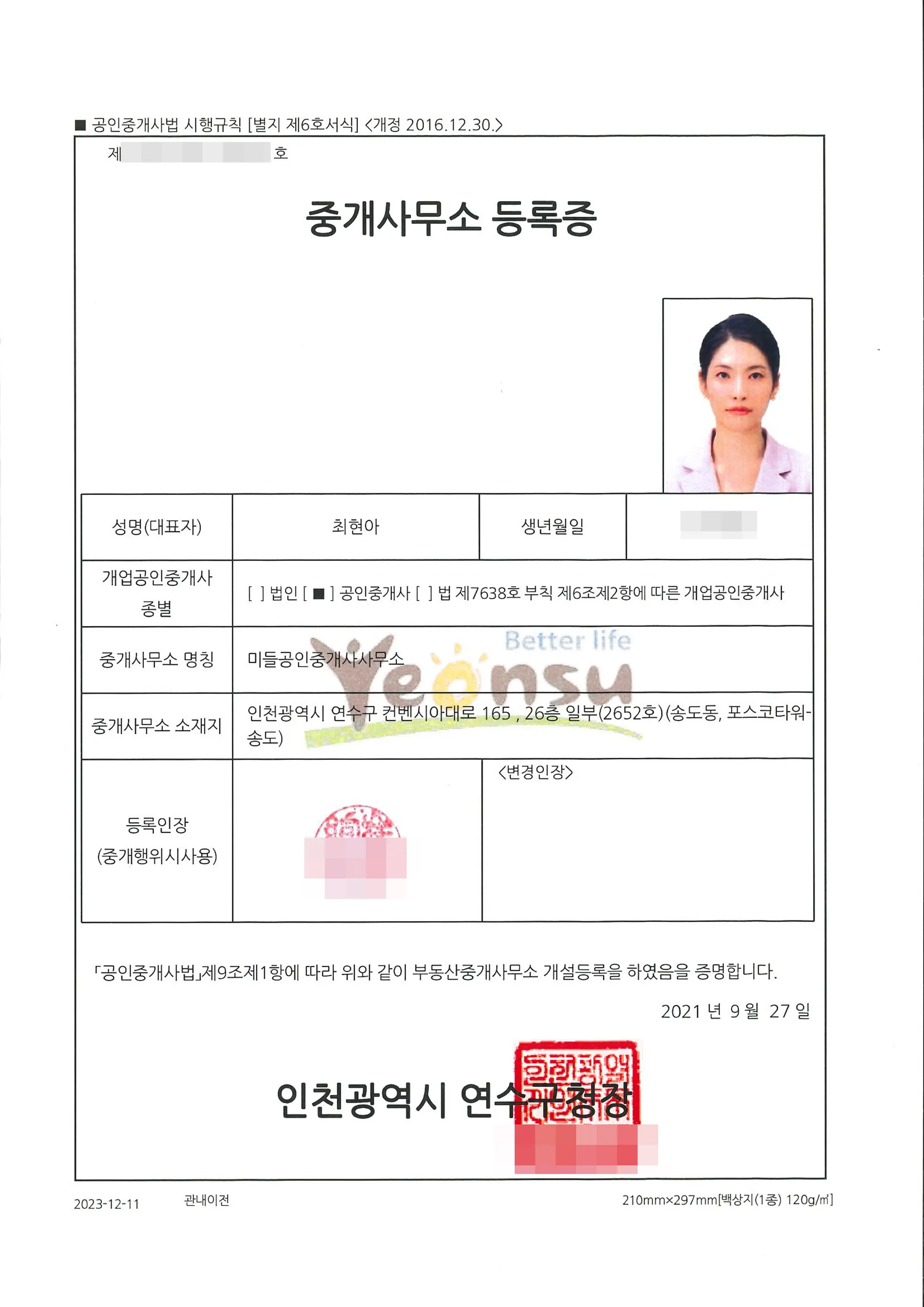 주소 : 인천광역시 연수구 컨벤시아대로 165, 26층 (송도동, 포스코타워-송도)